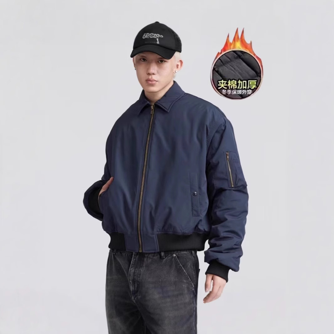 オリジナルのレトロな襟のパイロットジャケット男性クロスボーダー秋冬の新商品のゆったりとしたカジュアルな綿の服の男性は綿のコートを挟みます。