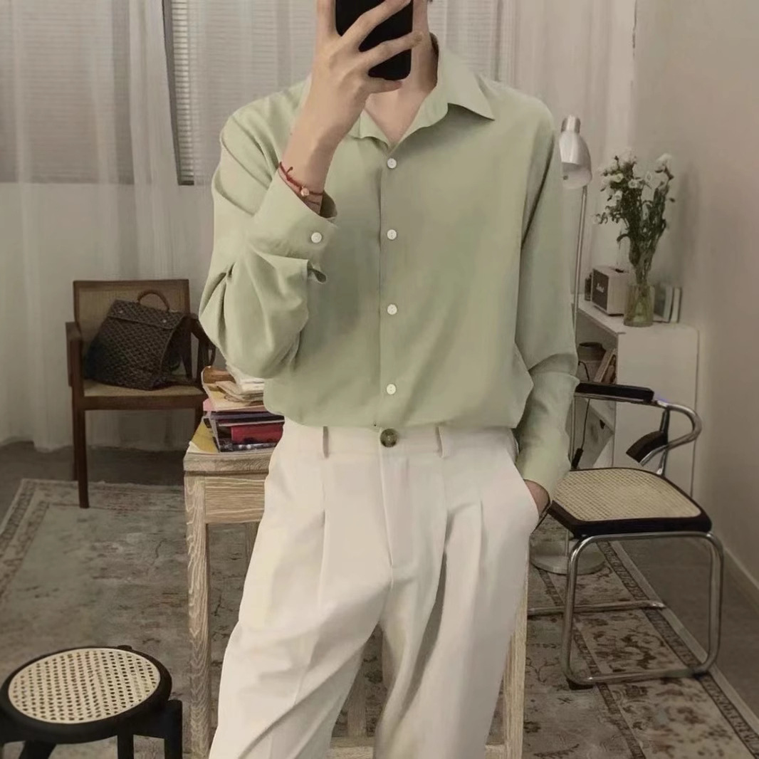 ブルーのシンプルな長袖のシャツの男性の韓国版のファッションはゆったりしています。