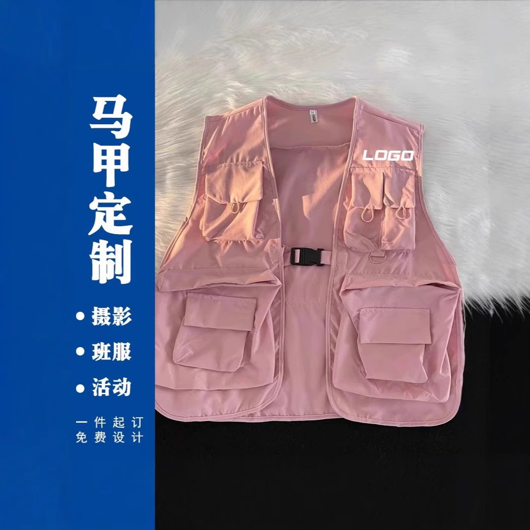 学院風開学シーズンの日系潮牌印logoベスト多ポケット工装馬甲カン肩男女コート