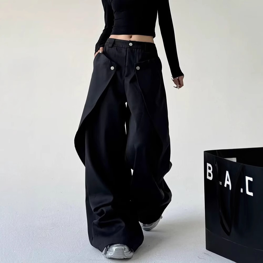 高級デザイン感カジュアルスーツのワイドパンツ女性2025春の新しいゆるいレトロなギャルカジュアルパンツ