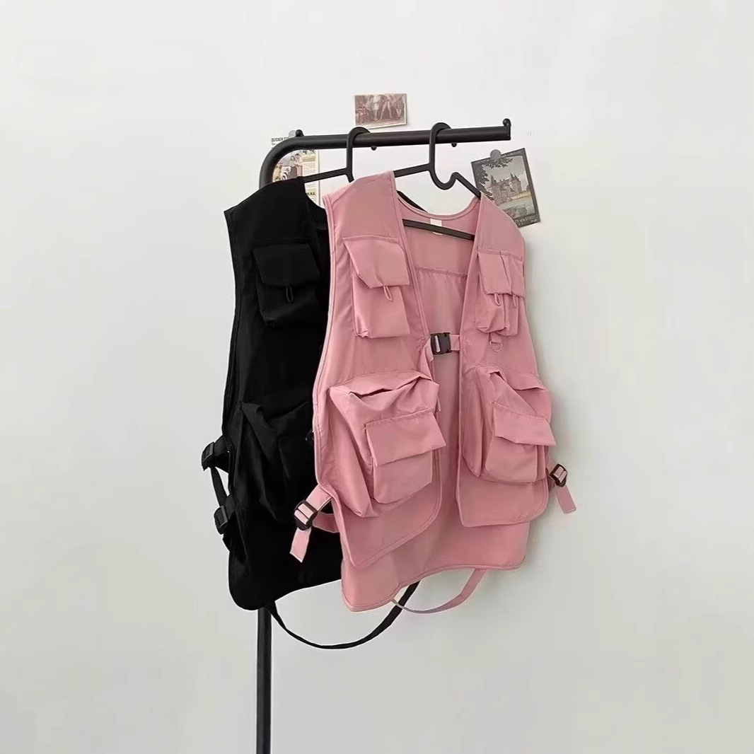 日系city boy機能工装馬甲男夏潮牌薄手コートピンク肩ジャケットベスト