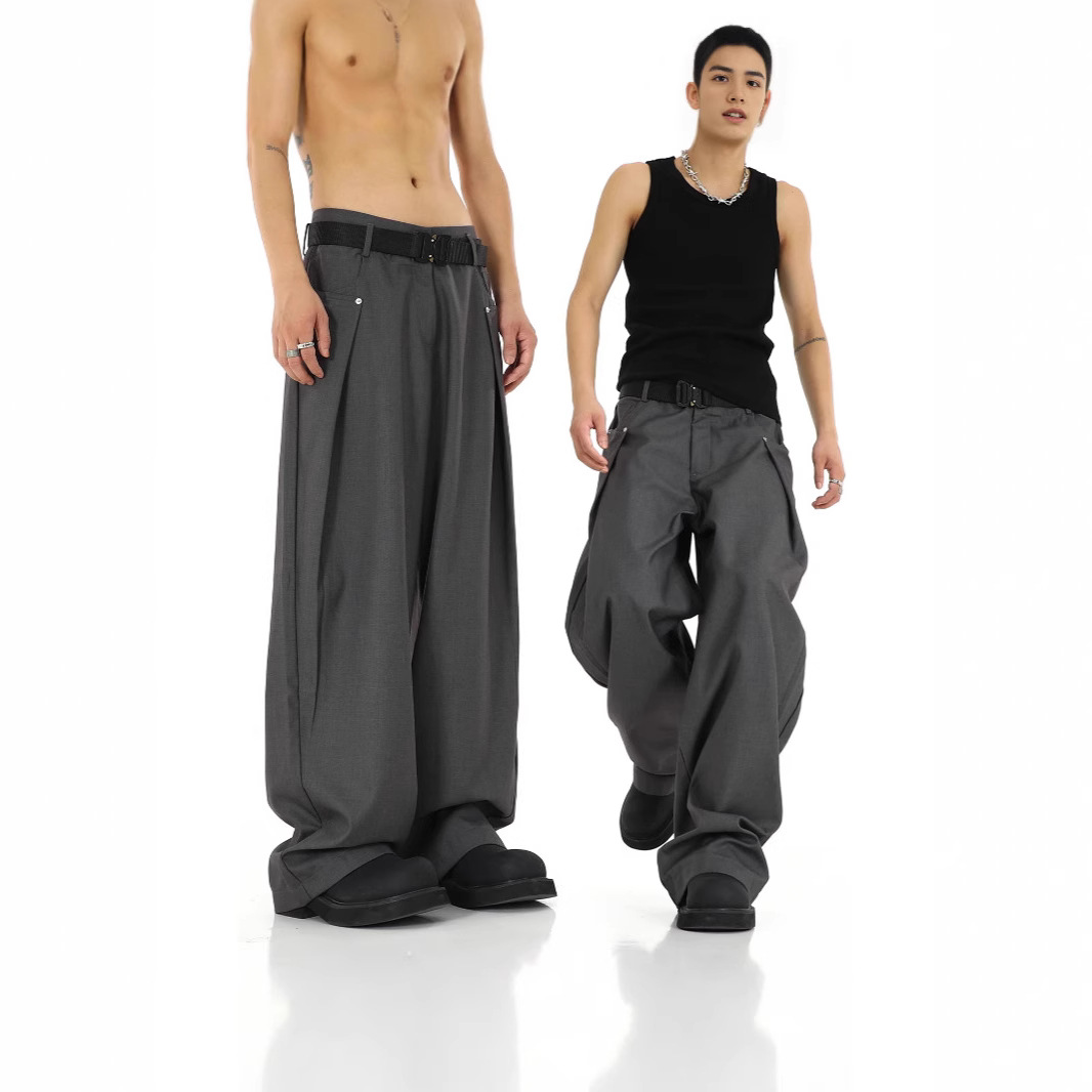 アメリカのレトロ高級スーツのワイドパンツは男女のゆったりとしたデザイン感があります。
