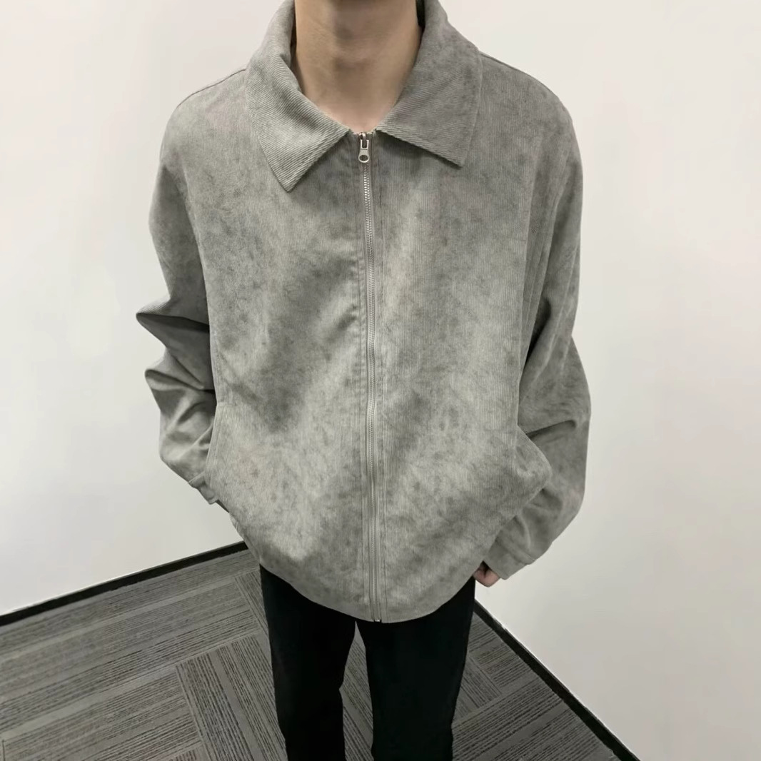 アメリカのレトロな特殊な筋目の固定染のジャケットの男女の高級感のコーデュロイの春と秋の襟の野球の服のコート