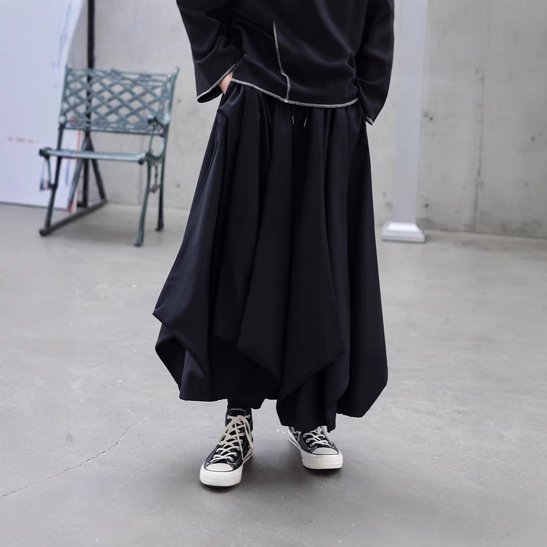 2025耀司風春と秋のスカートの男性のゆったりとした感じの不規則な灯籠のズボンの日本の小さい衆の9分の広脚のズボンの女性