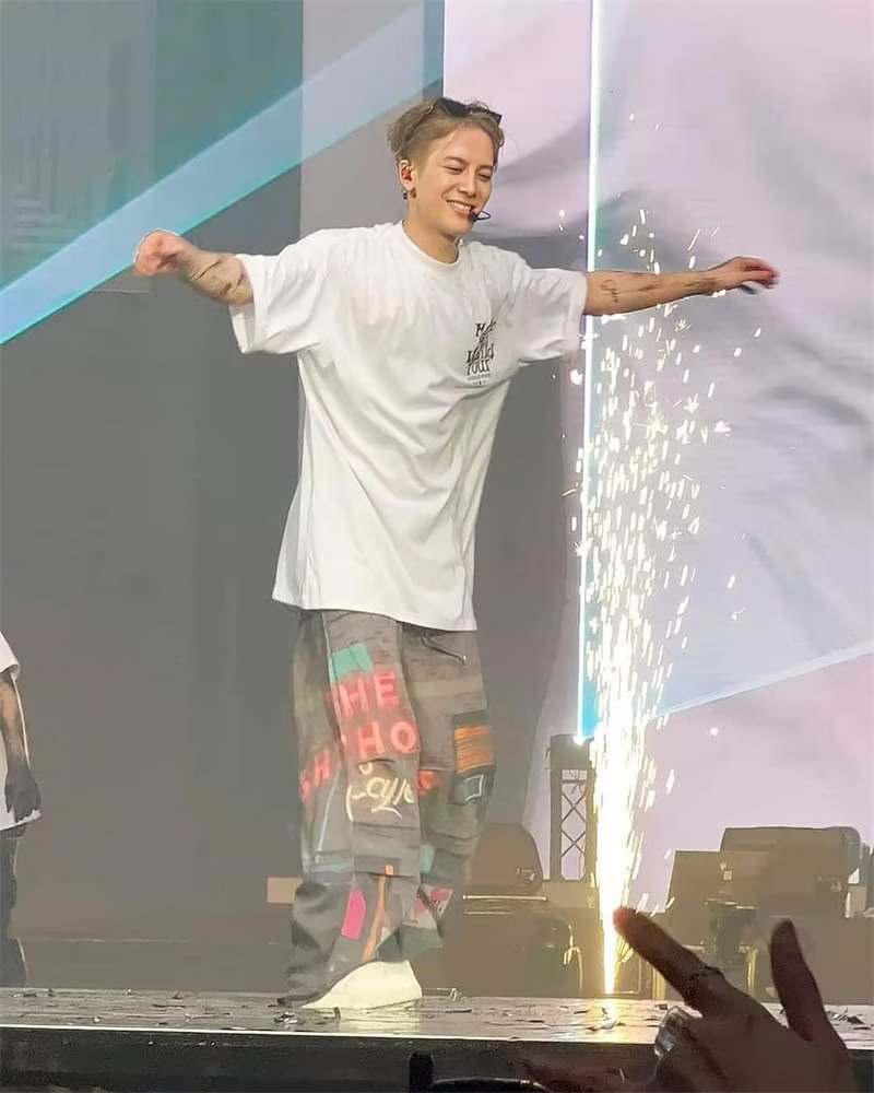 王嘉爾の同じタイプのズボンの落書きのプリントのゆったりとしたカジュアルなモップのズボンのレトロなインクをかけます。