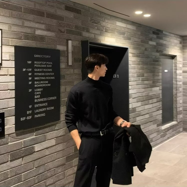 秋冬高級感半高襟セーター男性韓国版ゆるいカジュアル純色中襟ニット長袖インナー