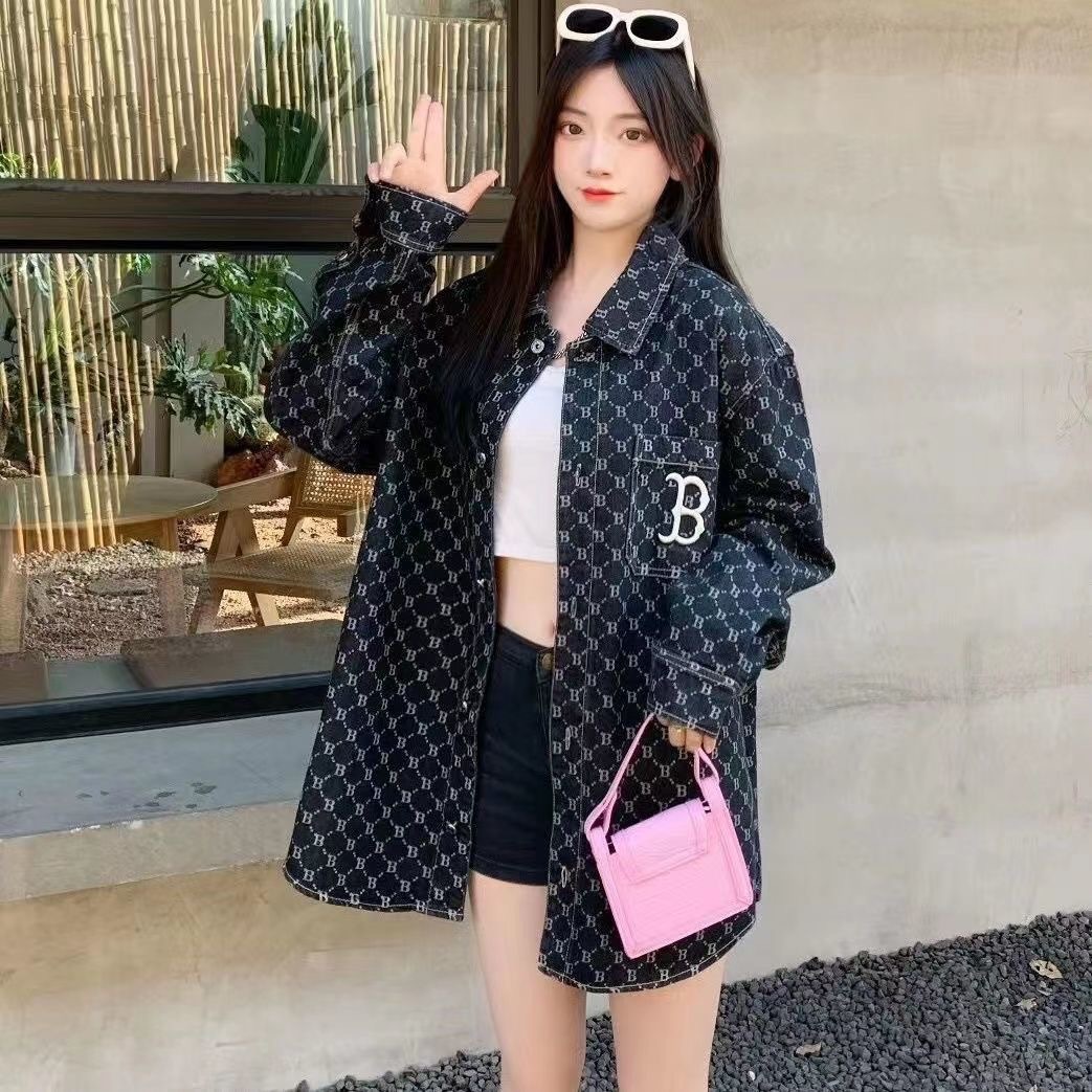 速手ネット赤同金満印アルファベットシャツ女襟薄いジャケット男女社会精神若者カウボーイコート