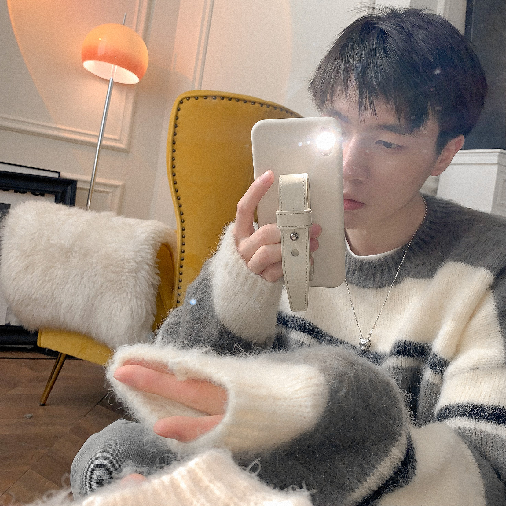 鹿のぬいぐるみのセーターの男性の冬の厚いストライプの柔らかいモチモチのニットの秋冬のタイプの怠惰な風の高級感のファッションのブランドのコート