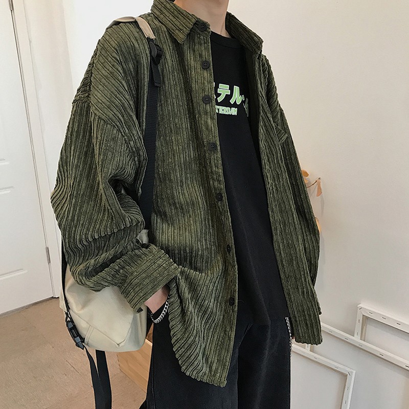 墨緑コーデュロイシャツ潮ins高級感コート男軽豪華アメリカレトロヴィンテージ長袖シャツ