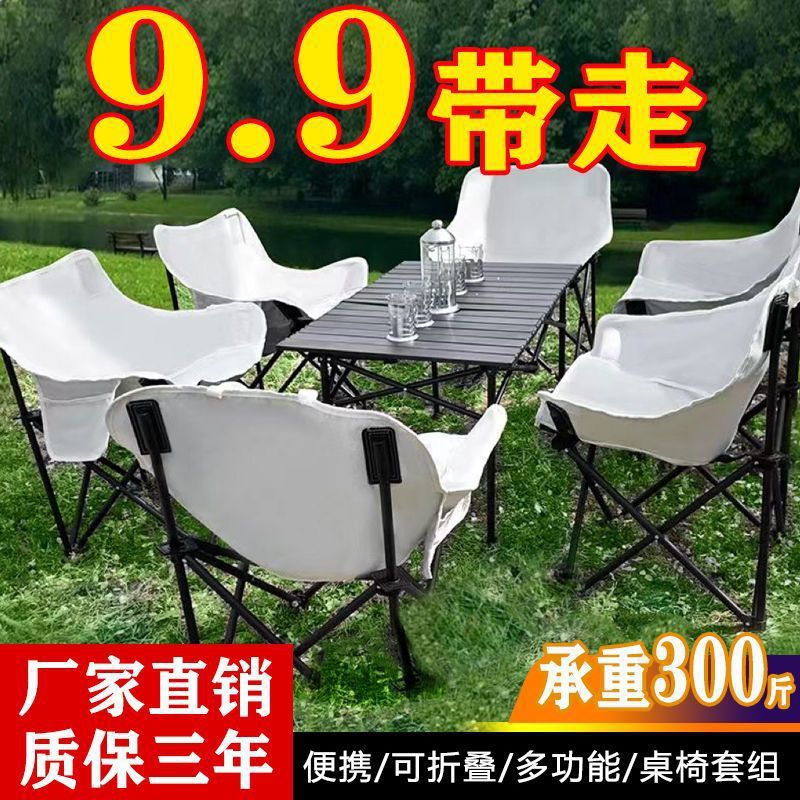 屋外折りたたみテーブルムーンチェアセットポータブルコンピュータテーブルエッグロールテーブルナイトマーケットストールレイジーチェア背もたれ椅子付き