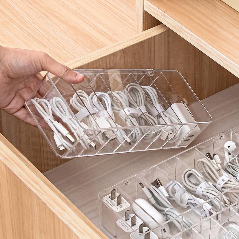 透明データケーブル収納ボックス、充電ケーブル、充電器コンパートメント、多機能雑貨収納ボックス、ポータブルケーブルワインダー