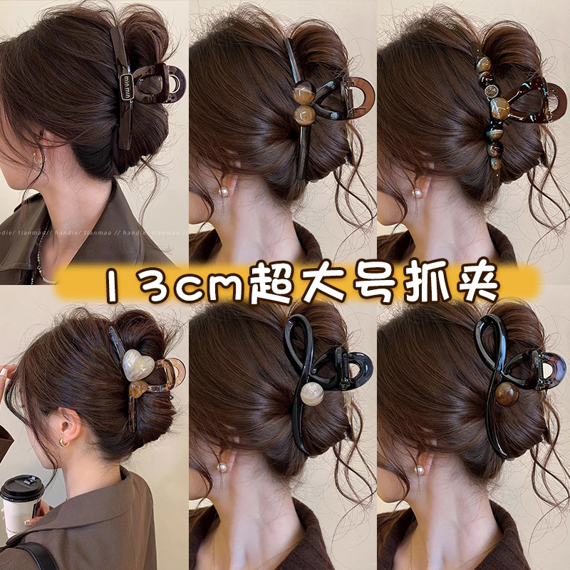 女性用の茶色の大きなグリッパー、髪のボリュームの多い女性用の高級シャーククリップ、気質のあるヘアピンとヘッドバンド