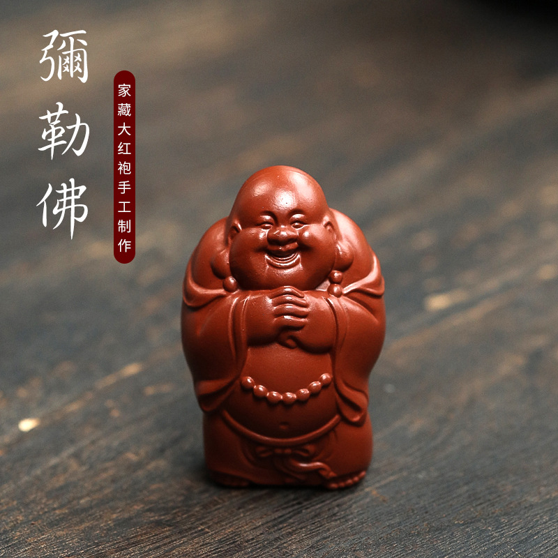 卸売り宜興手作り原鉱大紅袍紫砂茶寵弥勒仏人物彫刻家庭茶卓小置物