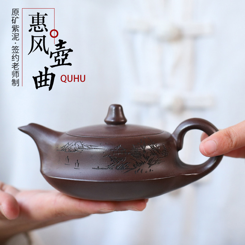 卸売りの代理商品は宜興の手作業原鉱紫泥紫砂壺恵風曲壺茶壺カンフー茶具直