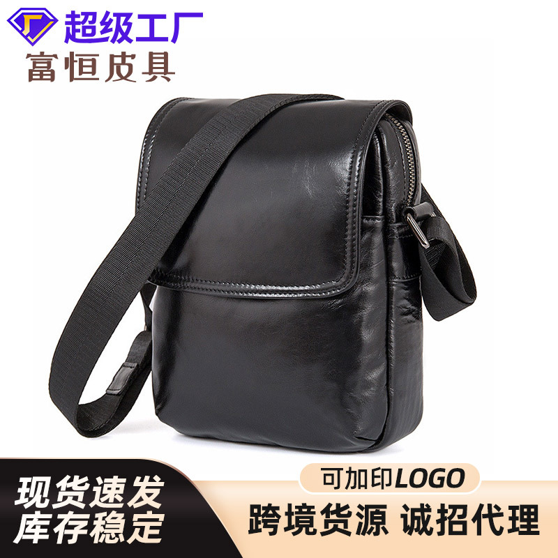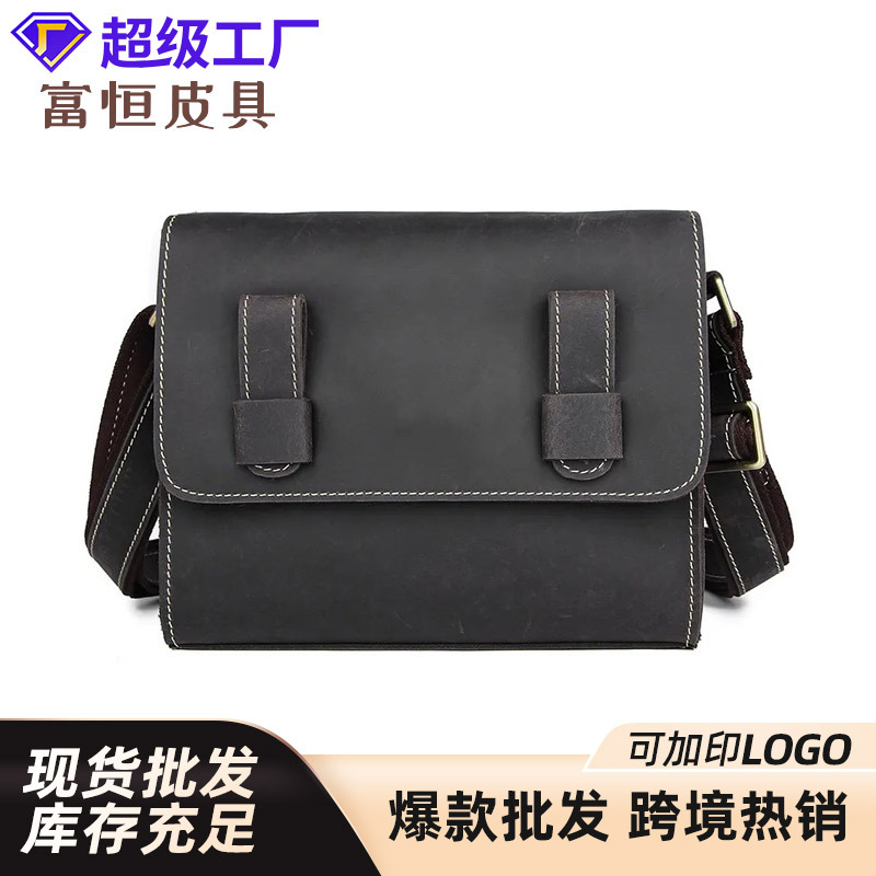 クロスボーダー本革男性バッグ狂馬皮男性斜めショルダーバッグトップ層牛革カジュアルバッグカバー式男性ショルダーバッグカスタマイズ