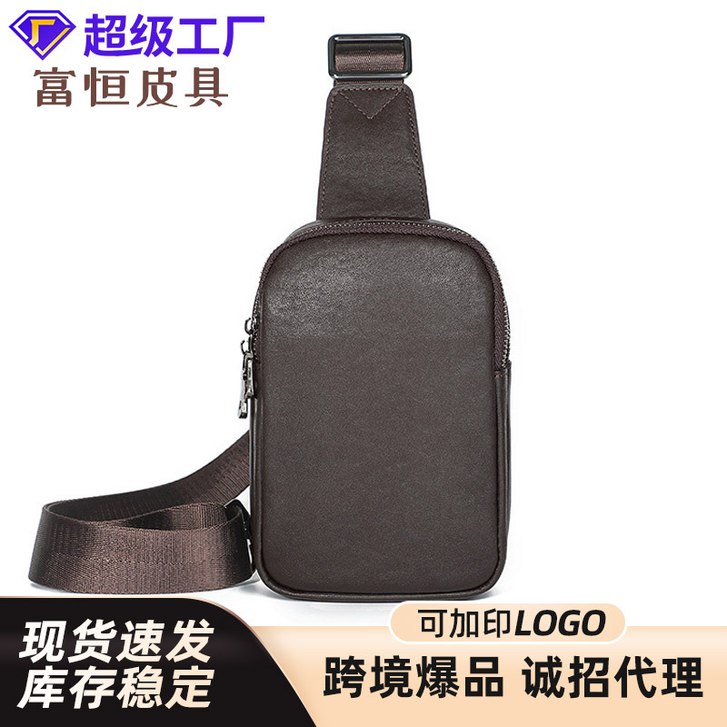 工場直売2024新型ファッションレトロ男性胸包頭層牛革シングルショルダー