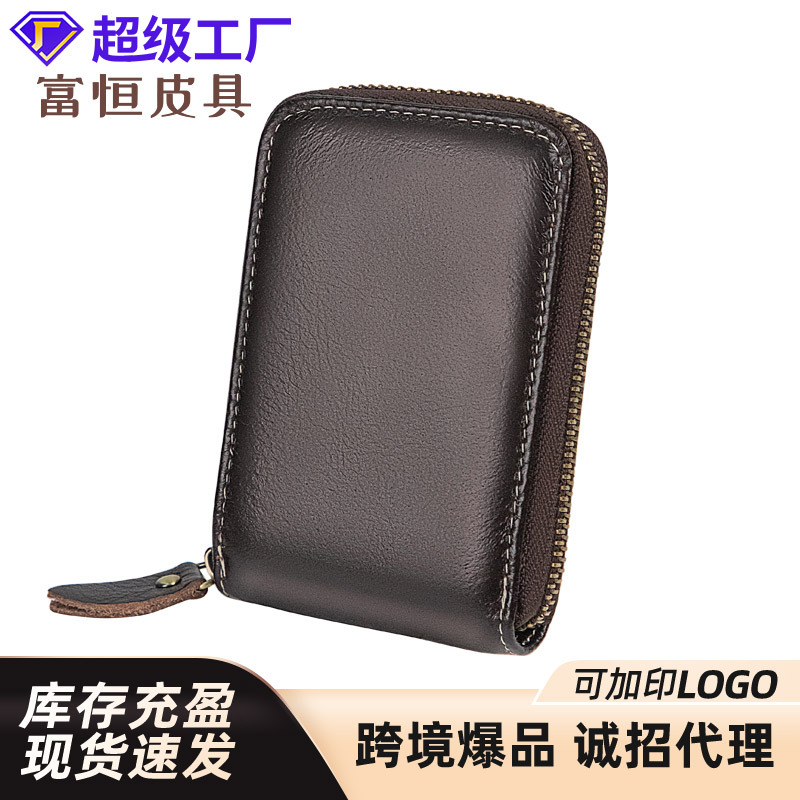 真皮カードクリップゼロ財布磁気防止RFIDトップ層牛革メーカーロゴスポット卸売りジッパー多カードカードバッグ