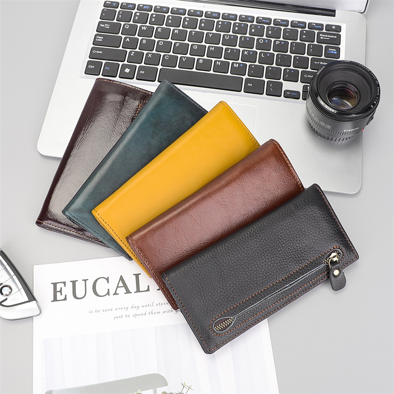 本革メンズ長財布ワックス革レトロ長財布トップ層牛革二つ折り大容量小銭入れ卸