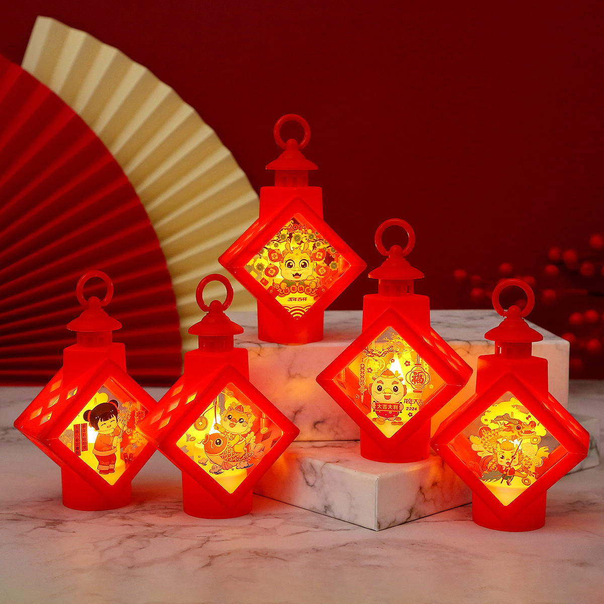 新年装飾品龍年手提げ小提灯旧正月露店プレゼント元宵節装飾発光置物