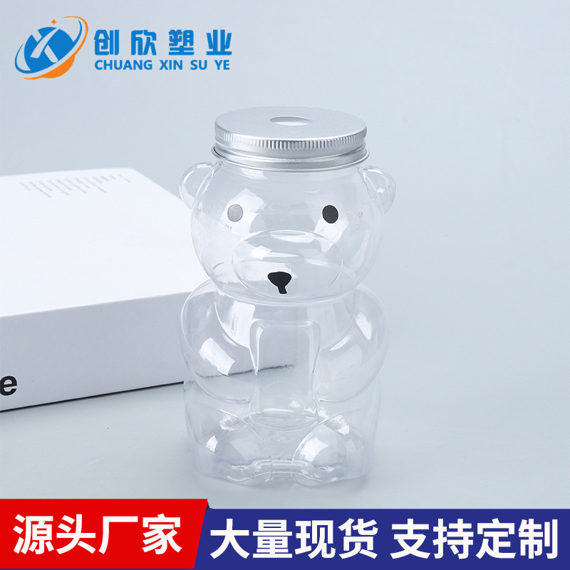 500ml透明petプラスチックボトルコーヒー冷たいドリンクジュースキャンディースナッククリエイティブ包装ボトル熊哺乳瓶