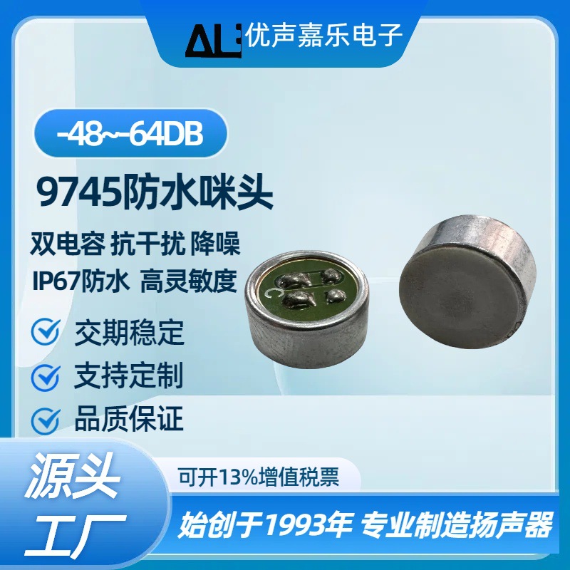 9.7mm * 4.5mm 9745マイクIP67防水ダブルコンデンサ耐ノイズマイクマイク送話器