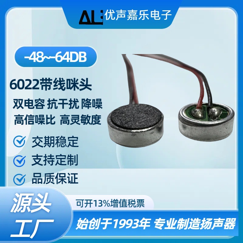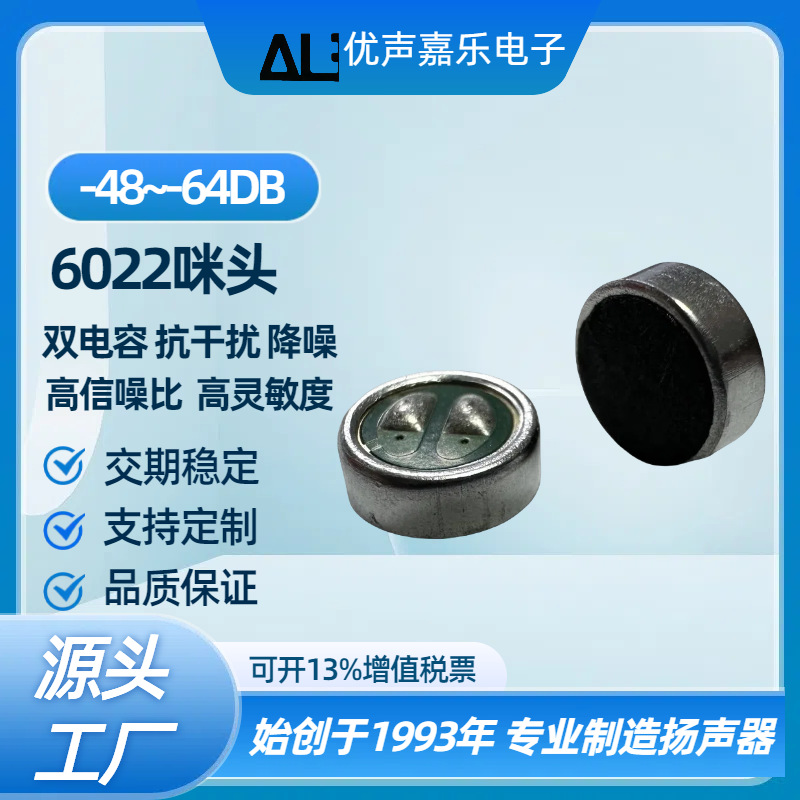 6mm * 2.2mm 6022マイクヘッド平頭溶接点ダブルコンデンサ2C耐ノイズマイク送話器