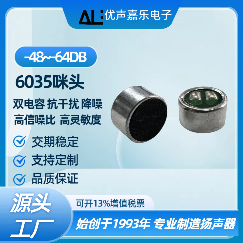 6mm * 3.5mm 6035マイクヘッド平頭溶接点ダブルコンデンサ2C耐ノイズマイク送話器