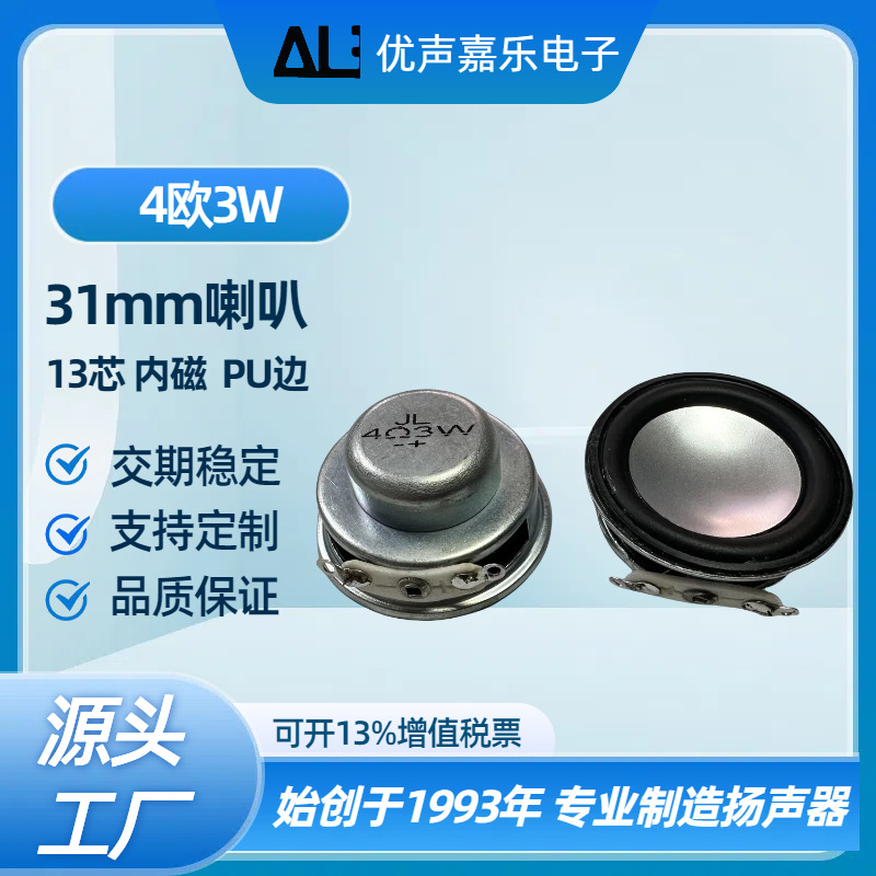 31mmラッパ4欧3w瓦銀帽単磁13芯PU辺高品質ミニbluetoothスピーカーラッパスピーカ