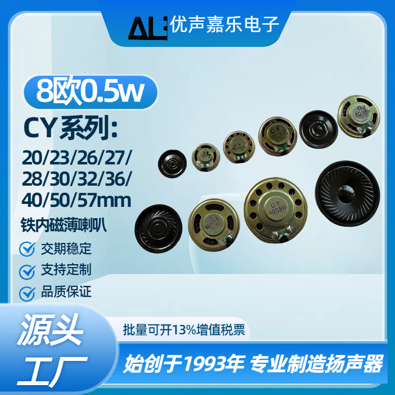 CYブランドスピーカー20/23/26/27/30/32/36/40mmインナーマグネット8オーム0.5W 8Rスピーカー