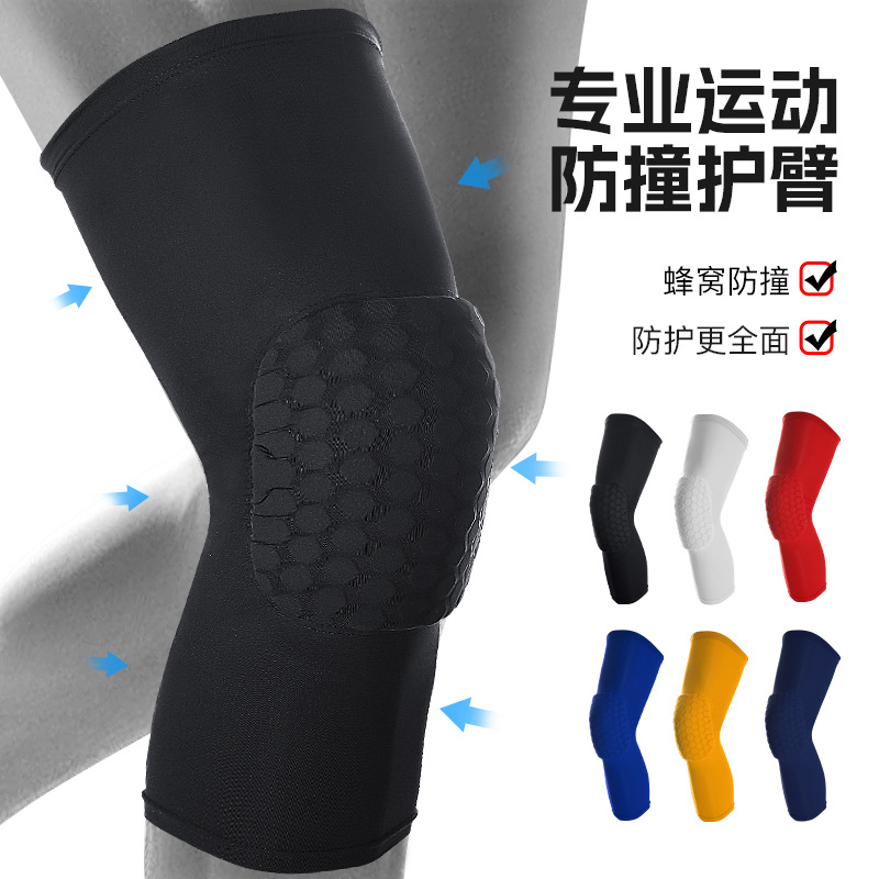 屋外のハニカム運動はバスケットボールの膝を保護して走って、通気性のある膝蓋骨の滑り止め防護の太ももの靴下の卸売りに乗ります。