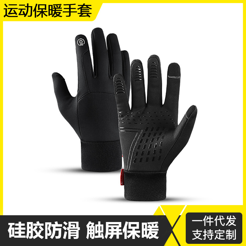 メーカー卸売秋と冬の屋外プラスベルベットスキータッチスクリーン暖かいスポーツ滑り止め自転車ライディンググローブカスタマイズ