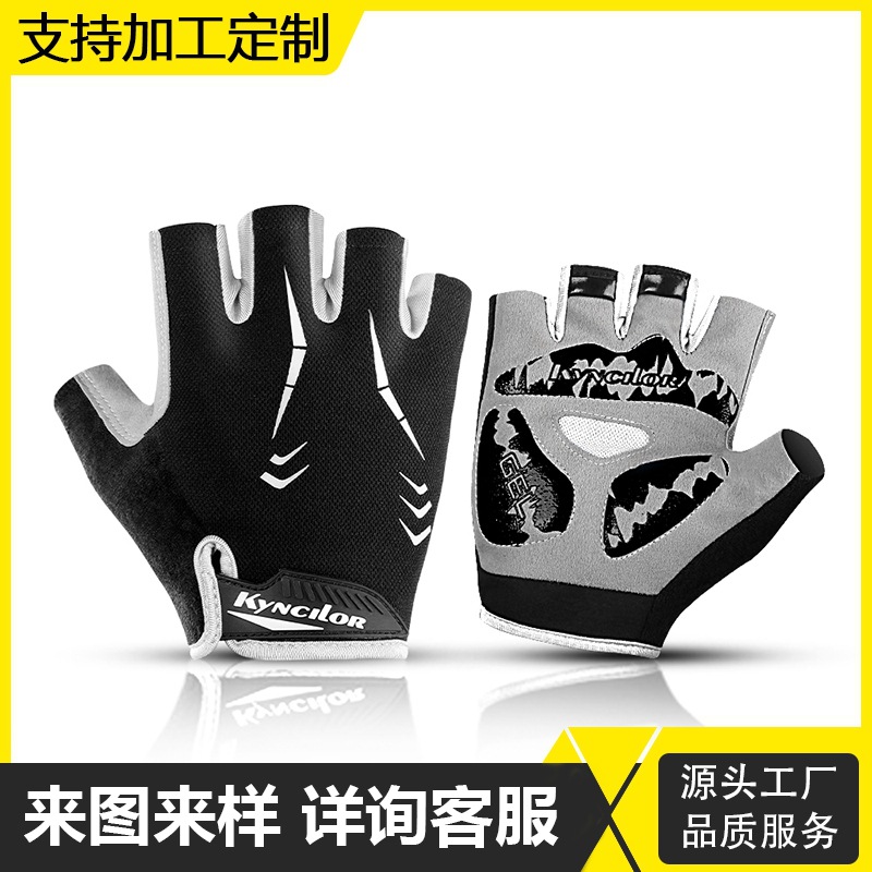 メーカー卸売スポーツサイクリング衝撃吸収指なしハーフフィンガー屋外フィットネスマウンテンバイク通気性手袋カスタマイズ