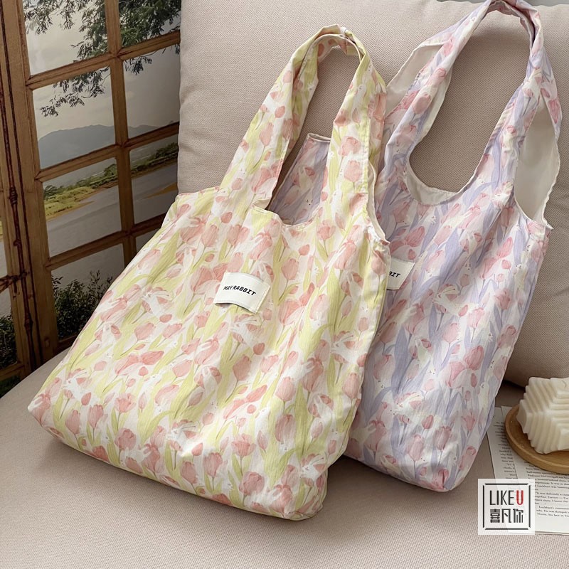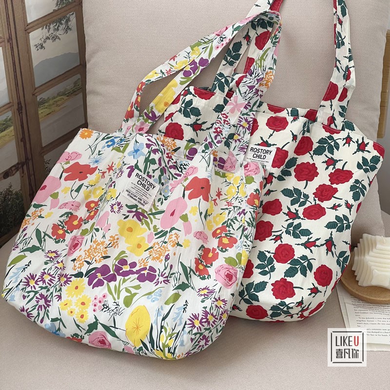 オリジナル夏物韓国風insレトロ花柄ショルダーキャンバスバッグバラ柄おしゃれ旅行バッグ可愛いins風