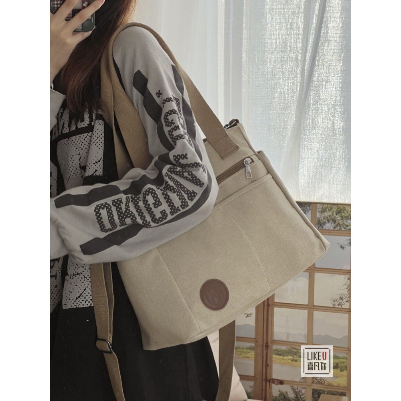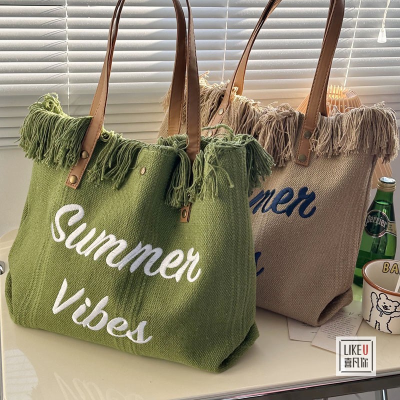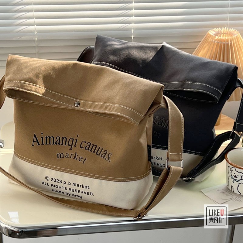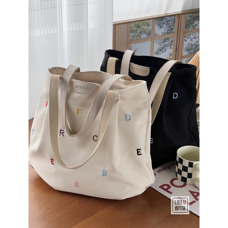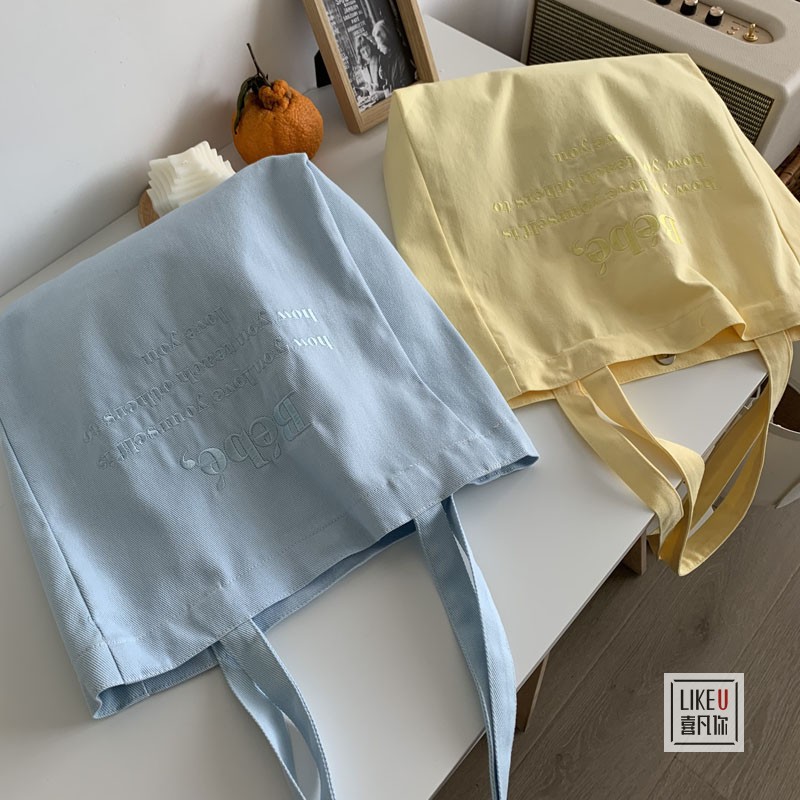 2023年オリジナル刺繍入りins風シンプル学生用ショルダーバッグ韓国風カジュアル大容量キャンバスレディースバッグカジュアルバッグファッション