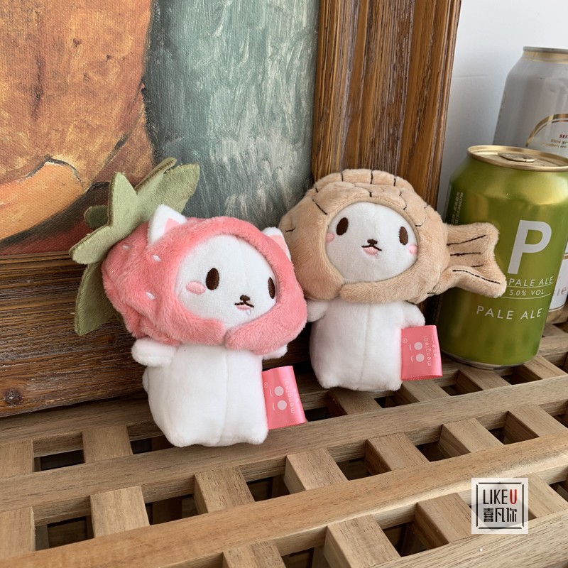 日本ネット赤猫いちご取り外し可能な帽子のキーホルダーバックパック人形人形人形帽子の濃厚な魚焼き
