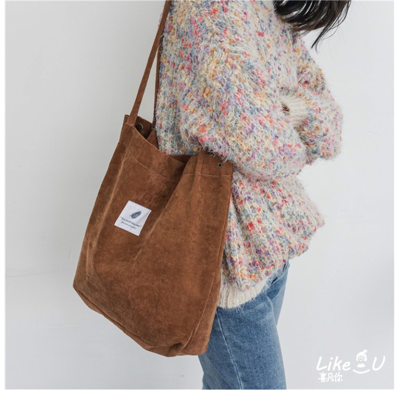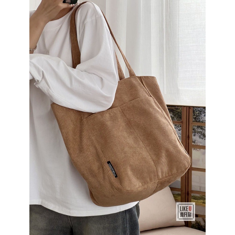 オリジナルの自作日系シンプルなコーデュロイ大容量トートレジャー文芸学生ファスナー通勤シングルショルダーバッグ