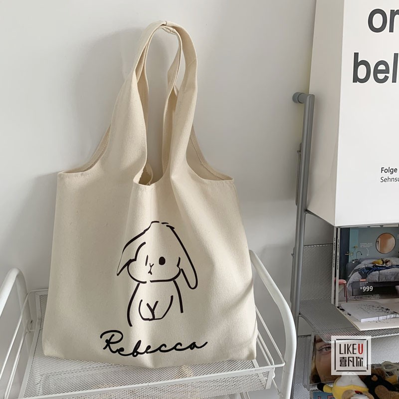 オリジナルうさぎ2023型トートキャンバスバッグイラストかばん文芸シンプルレトロ斜めショルダーバッグ