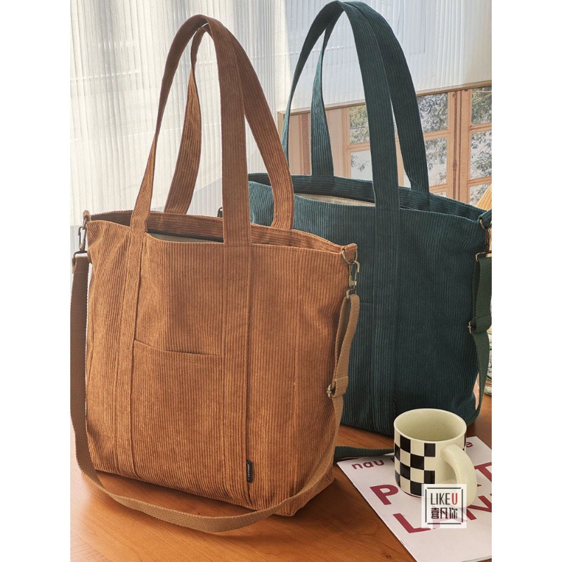 オリジナルデザインの日本風秋冬通勤用厚手コーデュロイ素材トートバッグ、カジュアルでアーティスティックな学生向け斜め掛けバッグ、シンプルで多用途