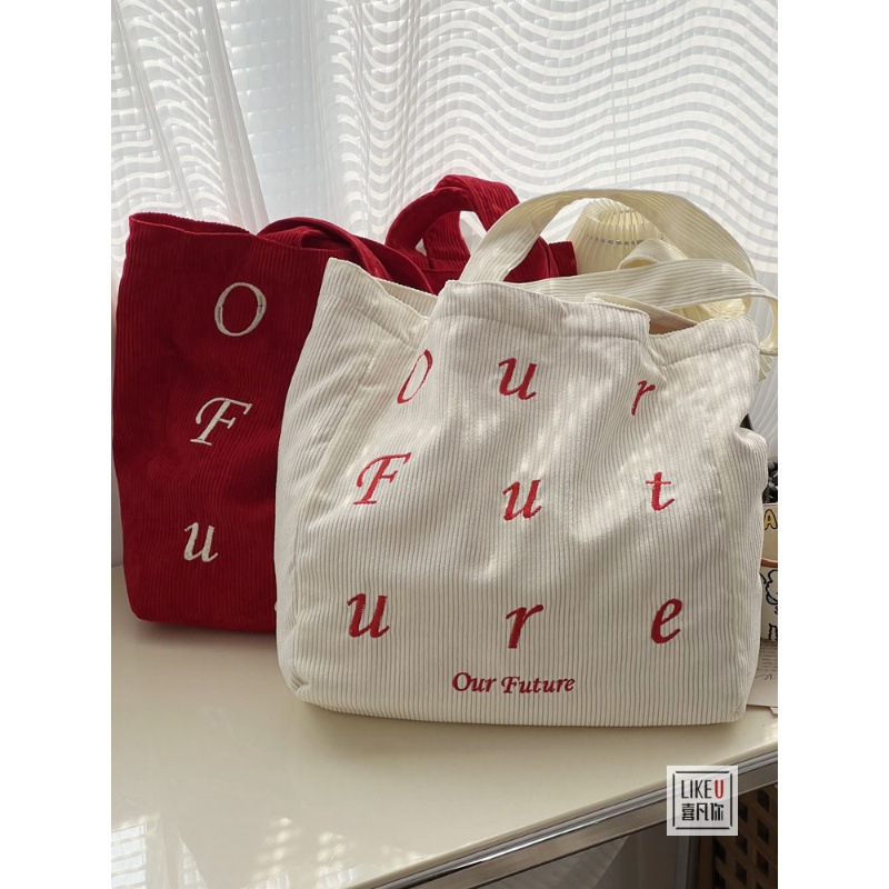 オリジナルデザイン 秋冬 韓国風 コーデュロイ 文字刺繍 通勤 学生 ショルダー トートバッグ カジュアル 文芸風
