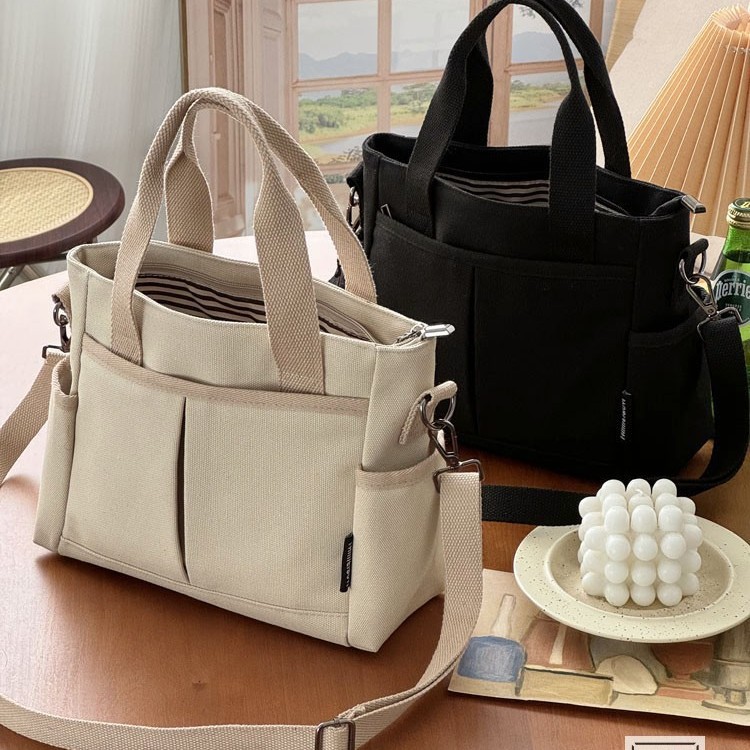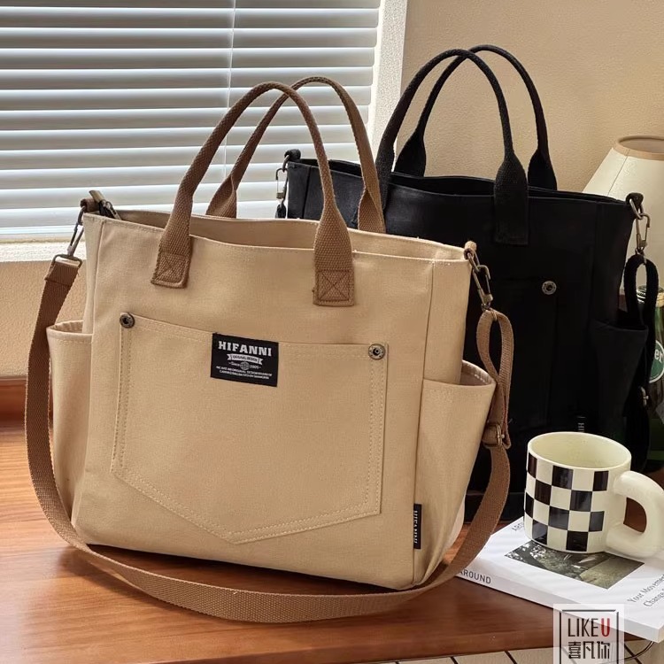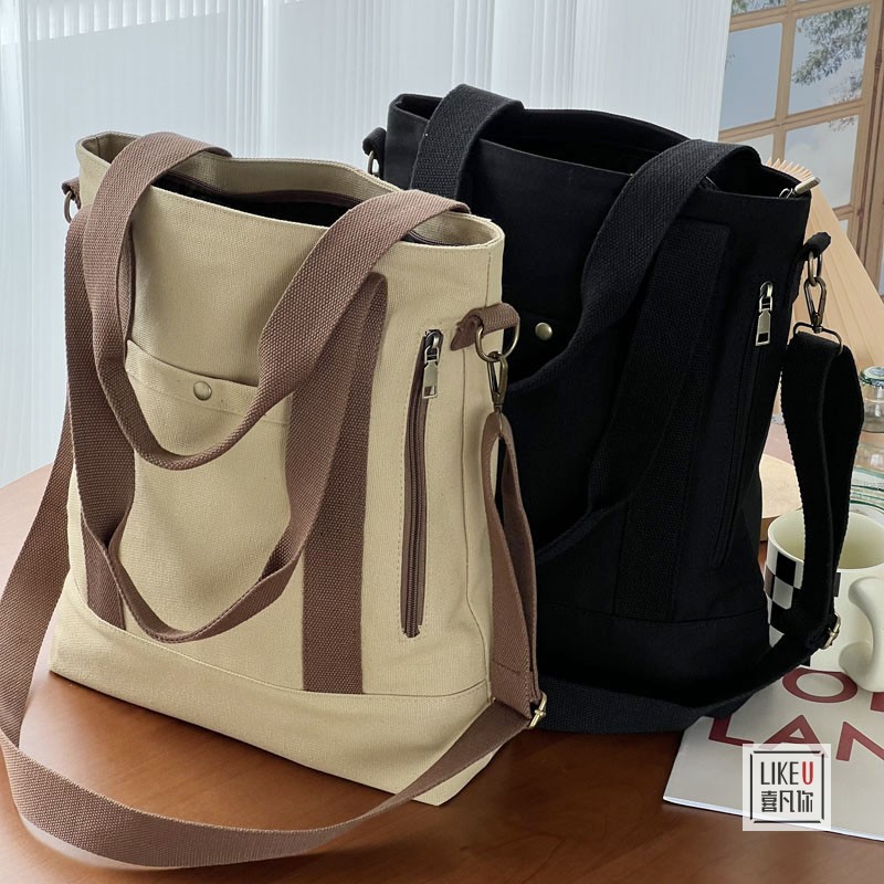 新型オリジナルの自作日系文芸厚手多ポケットキャンバスバッグカジュアルシンプル手提げ斜め掛けトートバッグ