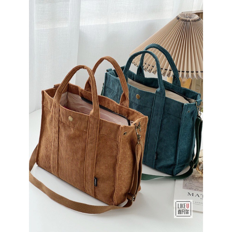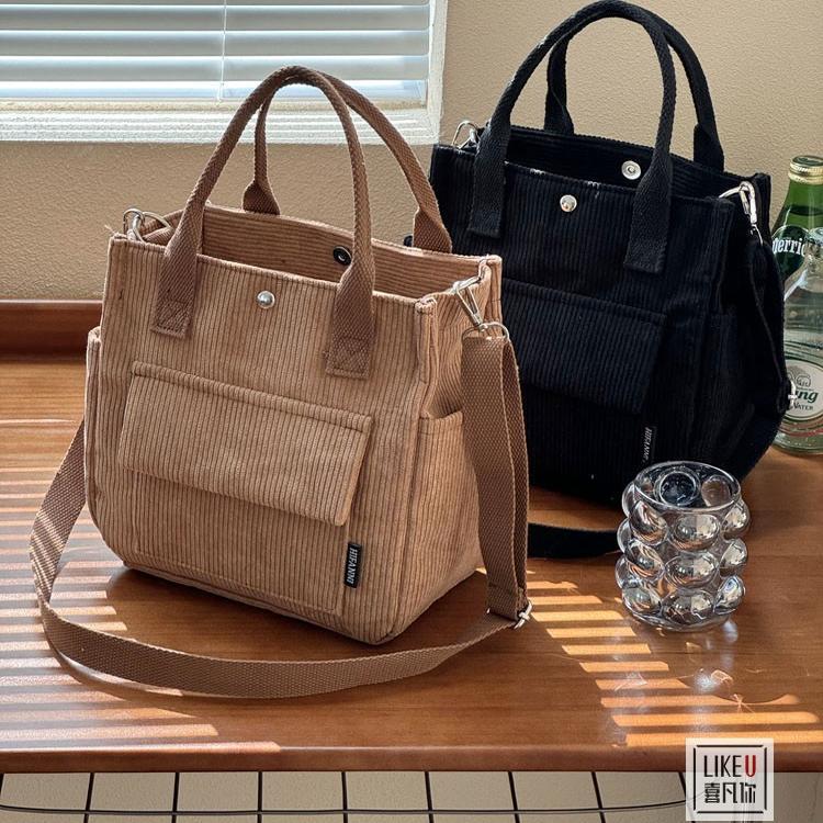 オリジナル秋冬和風厚手コーデュロイシンプル多用途通勤トート学生ハンドバッグ斜め掛けバッグ大容量