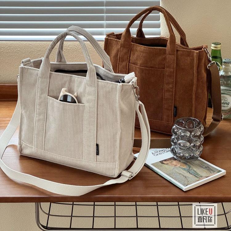 オリジナル秋冬新作厚手コーデュロイシンプル通勤トートバッグ学生レジャー文芸手提げ斜め掛け布バッグ