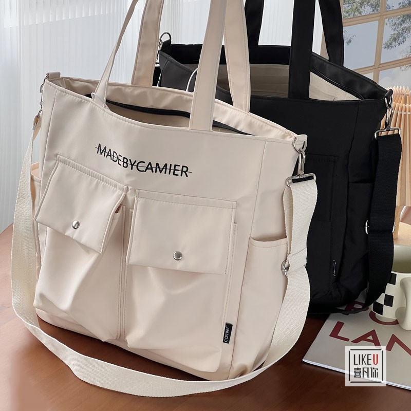 オリジナルの上質なポリエステル多ポケットデザイン通勤トートレジャー文芸学生シングル肩斜め掛け女性バッグ