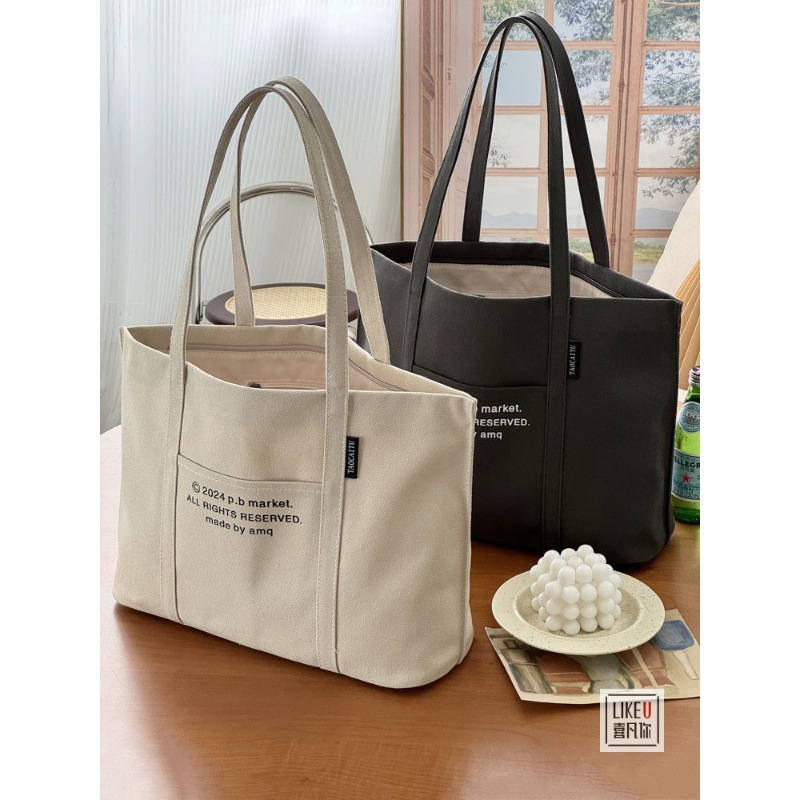 オリジナルデザイン韓系文芸カジュアルアルファベットキャンバストート学生の通勤は簡単です。
