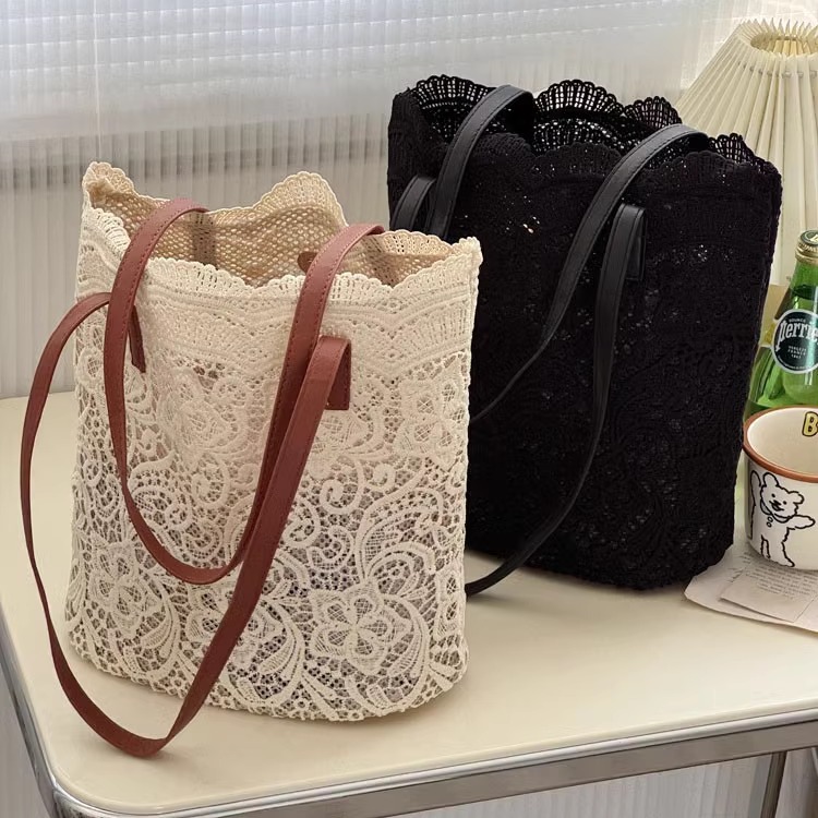 韓国系insレトロレース透かし彫り文芸休暇バケツバッグフランス式優しいシンプルなシングルショルダーバッグ