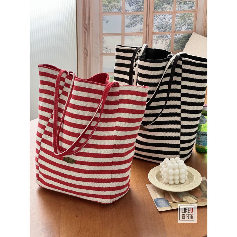 韓系の怠惰な文芸の両面のアルファベットのストライプのキャンバスの袋の日常の百合の大容量の学生のシングル肩の特包