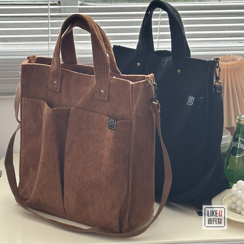 オリジナルデザインのファスナータイプのコーデュロイ文芸シンプルな通勤シングルショルダー
