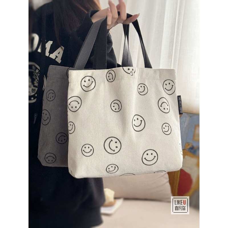 オリジナルの自作秋冬韓国版の可愛い笑顔のレトロでシンプルなコーデュロイ携帯化粧バッグ
