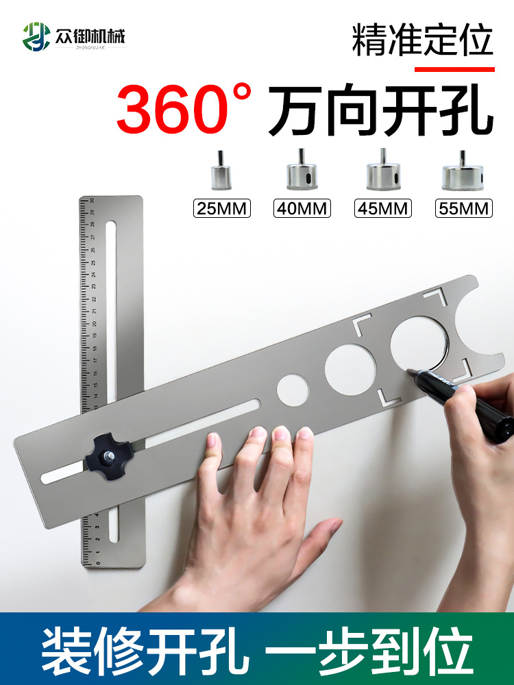 タイル穴開けロケータ穴開け定規瓦工ツール多機能調節神器ガラス自在穴開け器