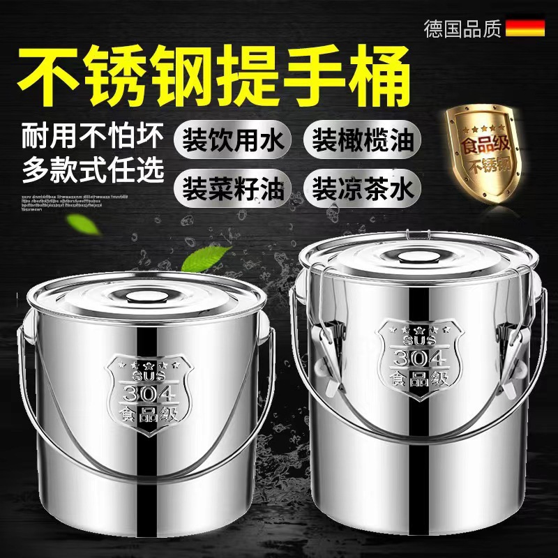 304 ステンレス鋼バケツポータブルアイスバケツ幼稚園スープバケツ蓋付きオイル貯蔵バレル家庭用キッチン食堂肥厚